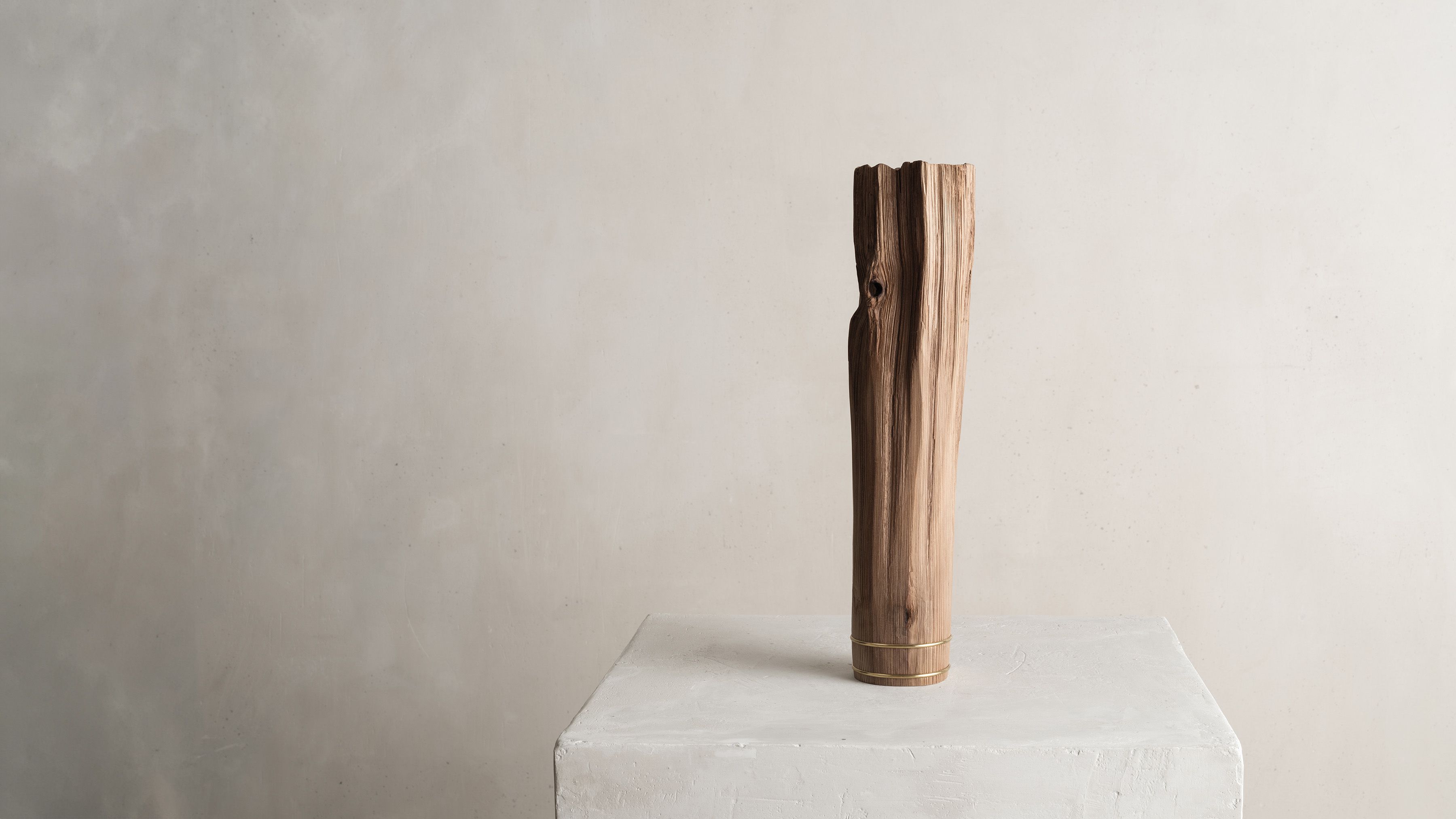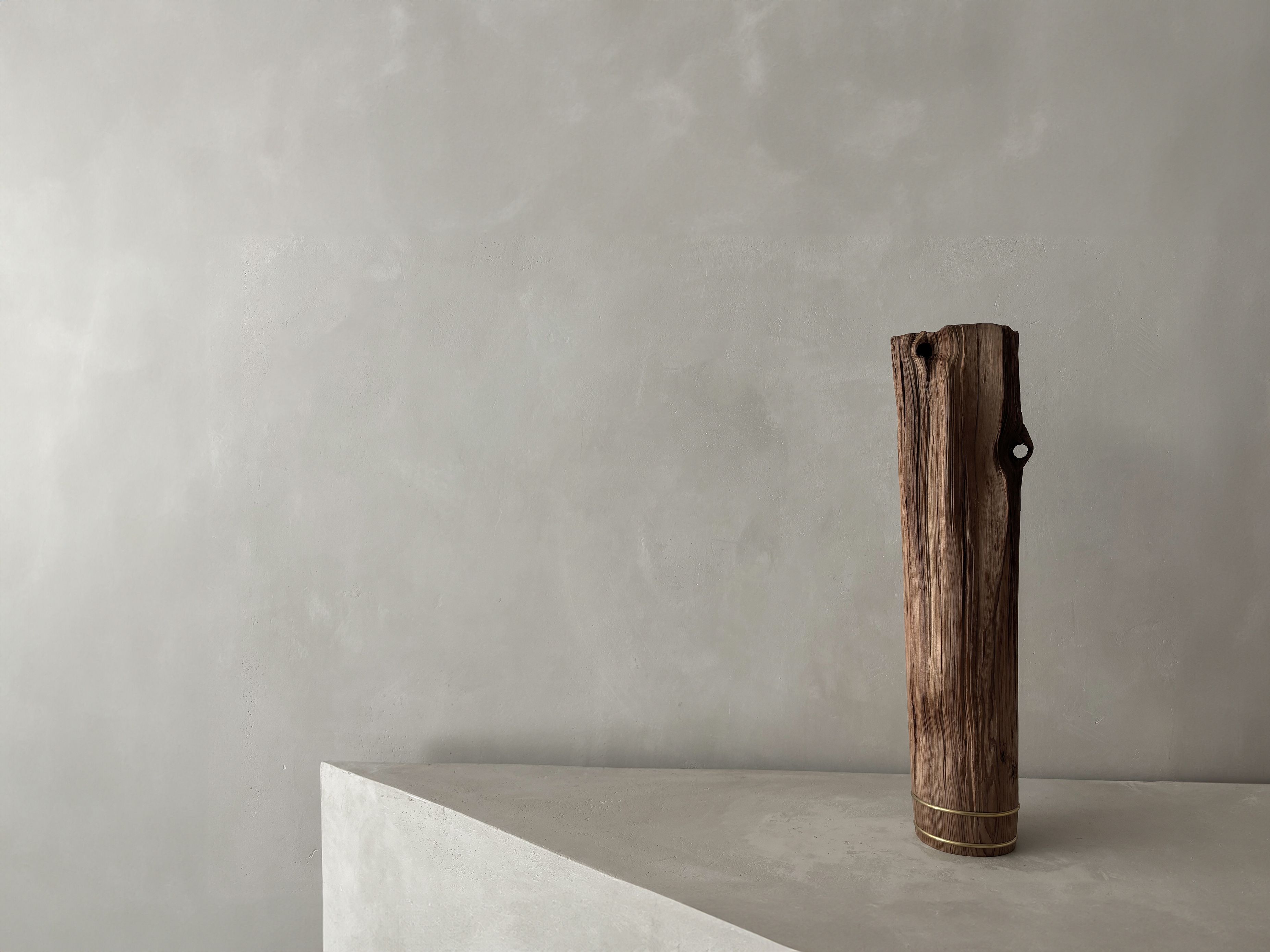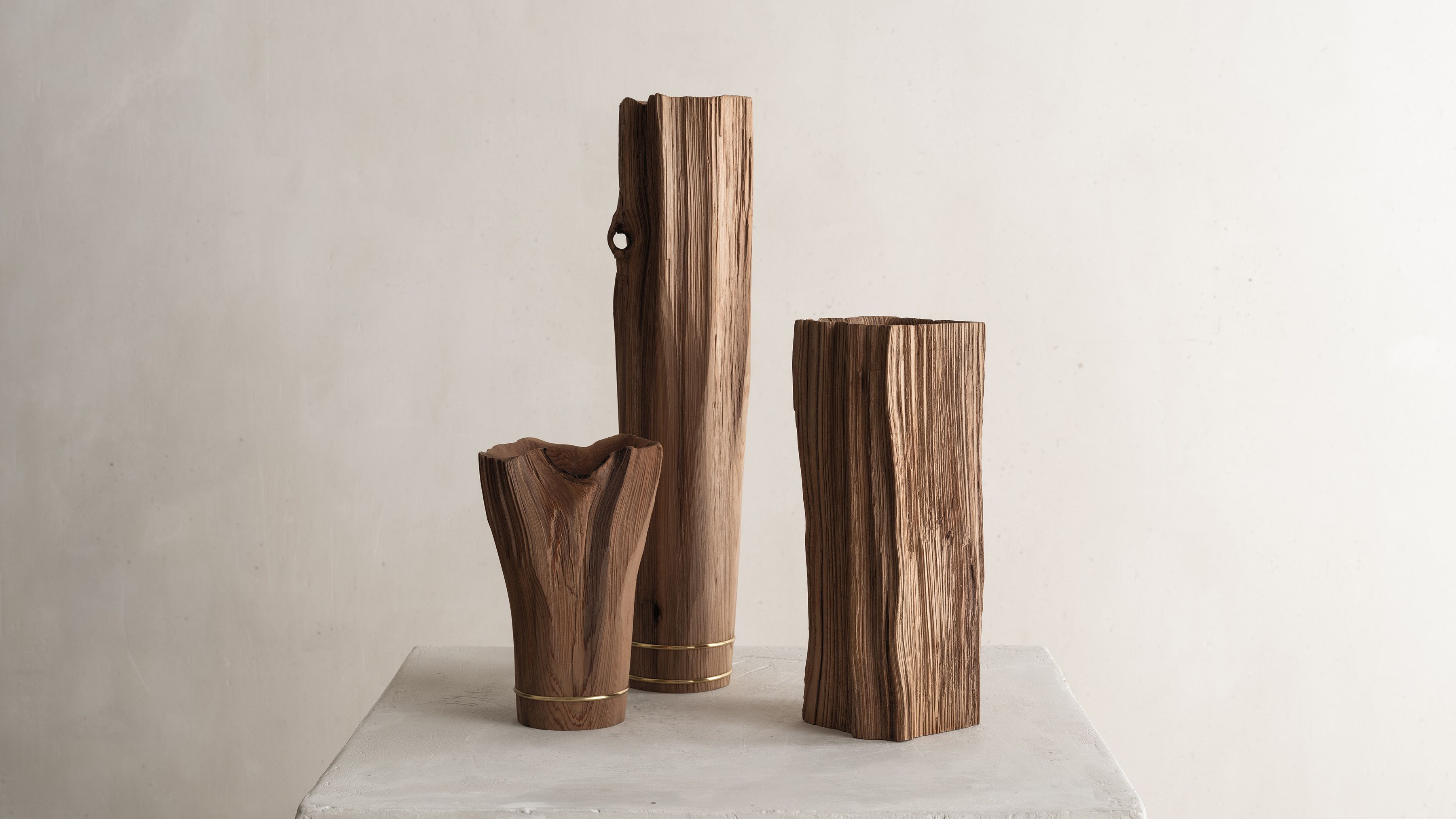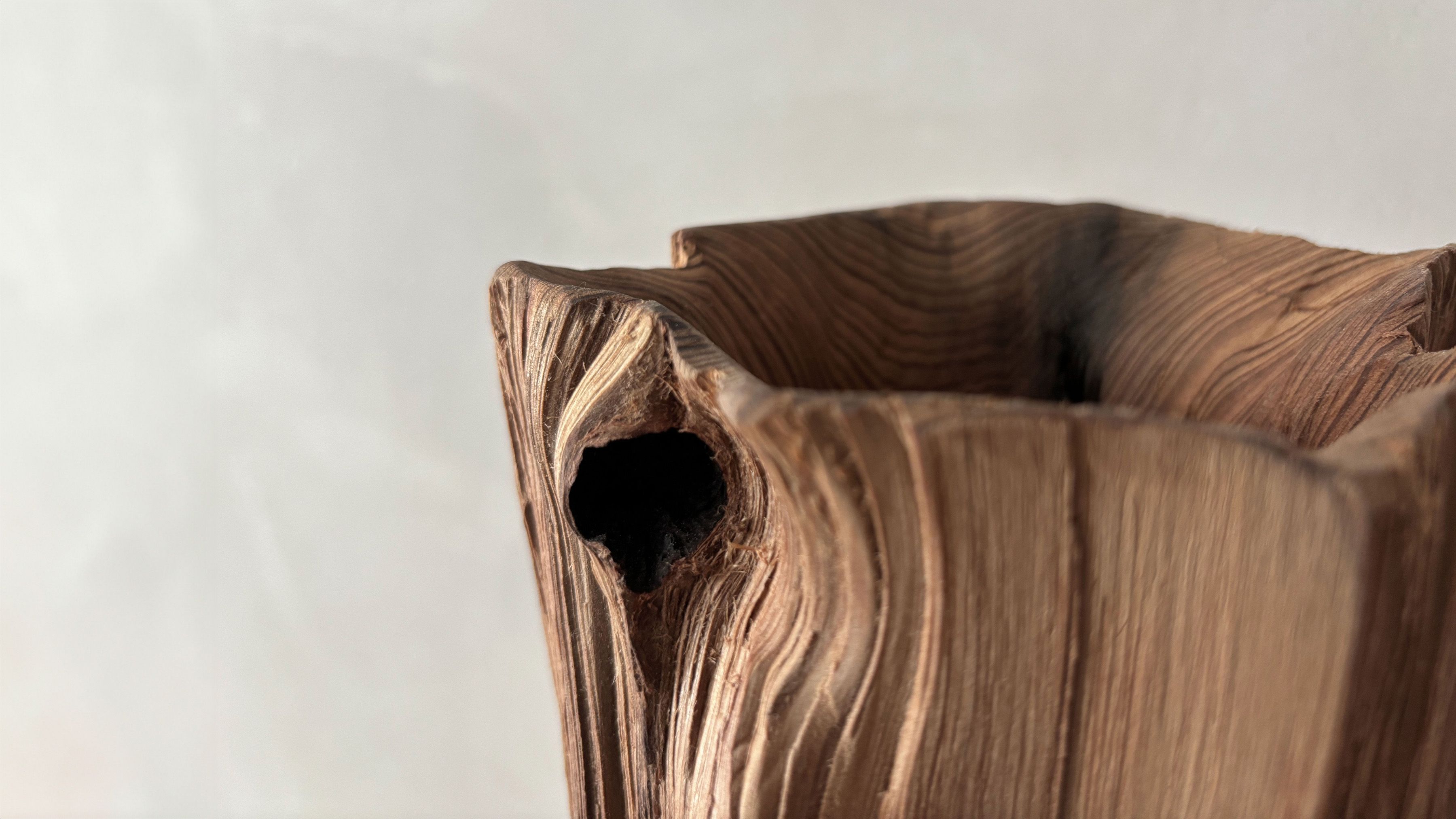 His entire body of work highlights the essence and natural beauty of various local wood species. Often the artist chooses to work with Jindai-Sugi — a Japanese cedar sourced from Northern Japan's forests that symbolizes the interconnectedness of humanity and the natural world. Its weathered bark and intricate patterns evoke a sense of harmony where the passage of time is celebrated rather than feared.