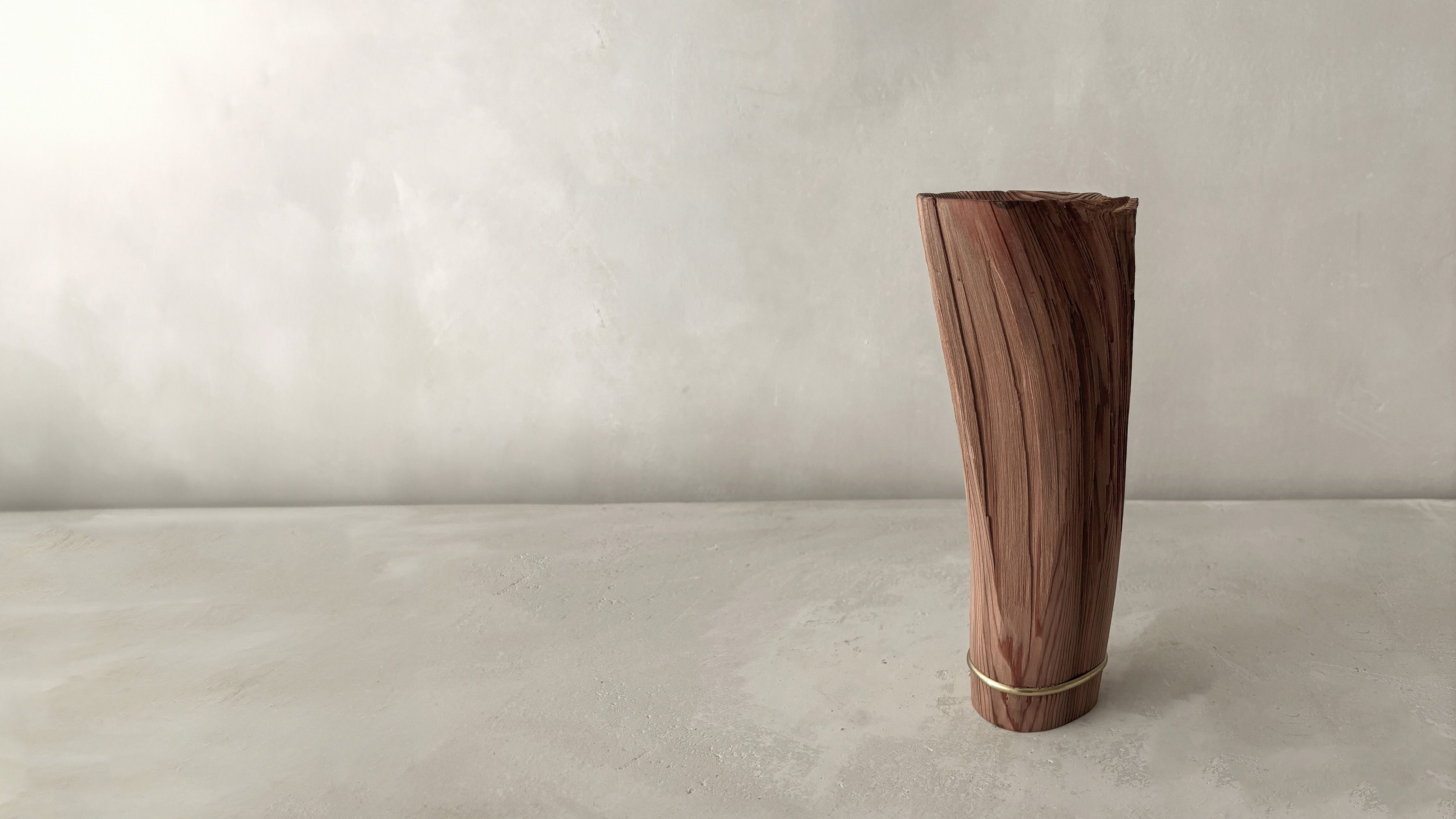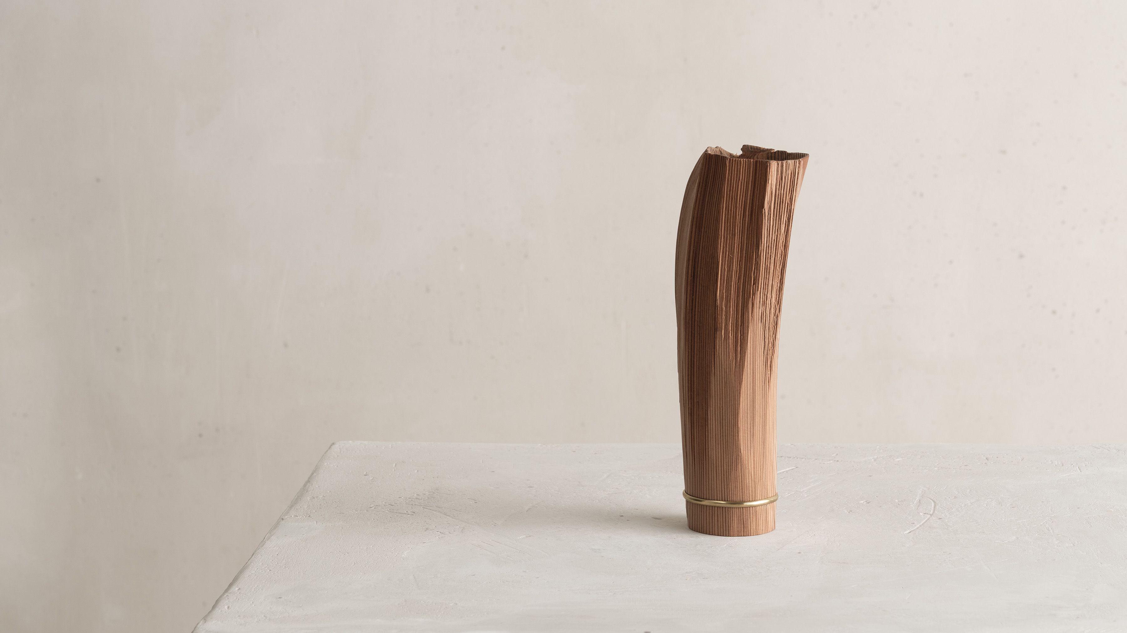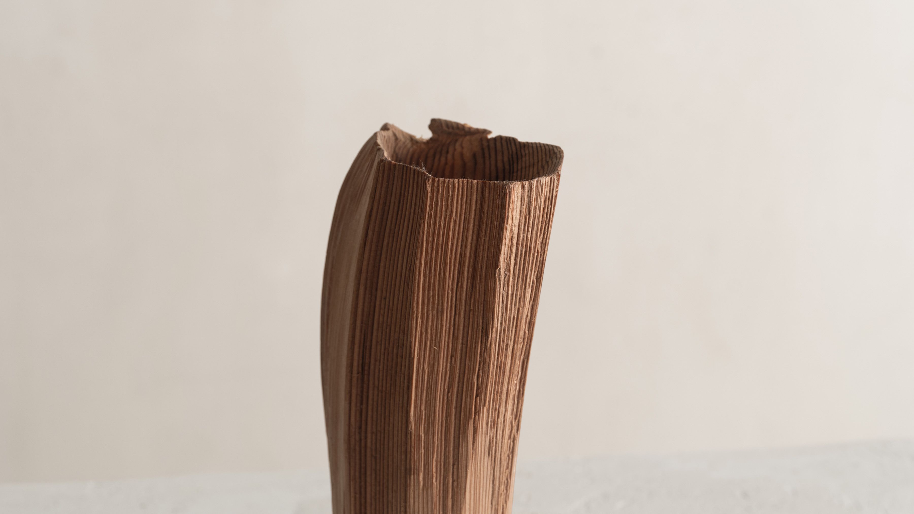 His entire body of work highlights the essence and natural beauty of various local wood species. Often the artist chooses to work with Jindai-Sugi — a Japanese cedar sourced from Northern Japan's forests that symbolizes the interconnectedness of humanity and the natural world. Its weathered bark and intricate patterns evoke a sense of harmony where the passage of time is celebrated rather than feared.