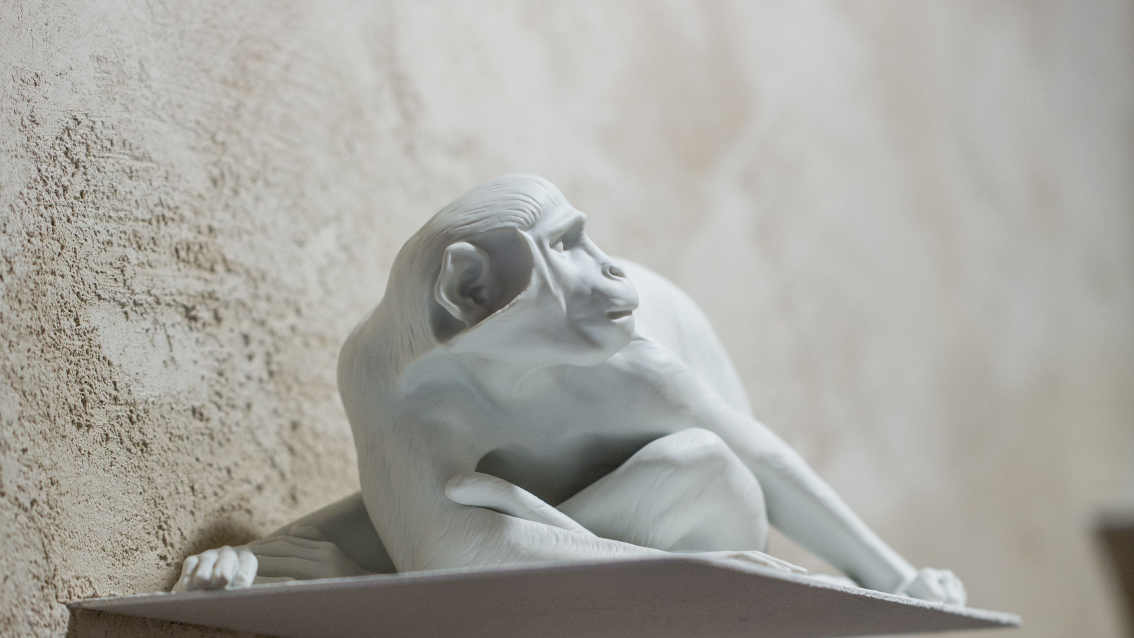 One of the key works from Nymphenburg’s historic catalogue of naturalistic animal figures, the monkey sculpture by German naturalist sculptor Theodor Kärner is among the faithful representations he was commissioned to create of exotic animals that toured Europe in the late 19th and early 20th centuries. At the time, European courts—interested in establishing their respective dominance through the arts, crafts, and natural sciences—would invite their most respected artists to record detailed, lifelike portraits of these rare creatures. Kärner’s sculpture captures both the anatomy and expressive character of the monkey with remarkable precision. The use of soft, bisque porcelain with a matte, unglazed finish enhances the sculpture’s lifelike quality and emphasizes its intricate modeling.