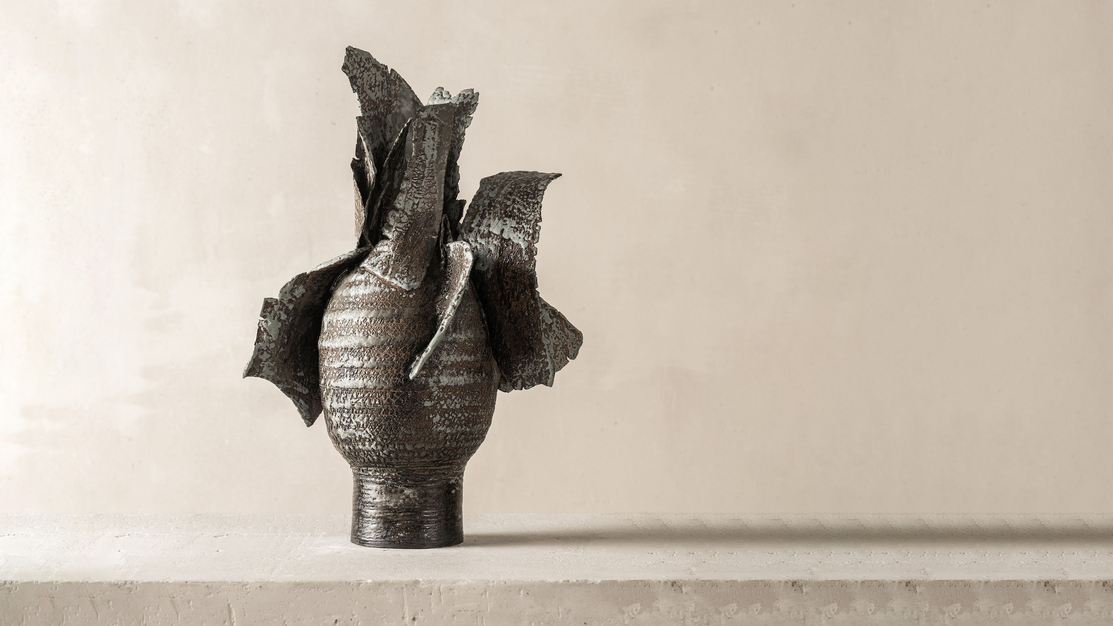 MITERIA by Peter Speliopoulos is a new series of highly textured, sculptural hand-formed vessels that celebrates the arrival of spring, the artist's familial heritage, and Greek mythical representations. By exploring new glazing and texturing techniques, the artist meticulously crafts each piece by hand to capture the organic irregularities found in nature, resulting in a range of unique sculptural forms.