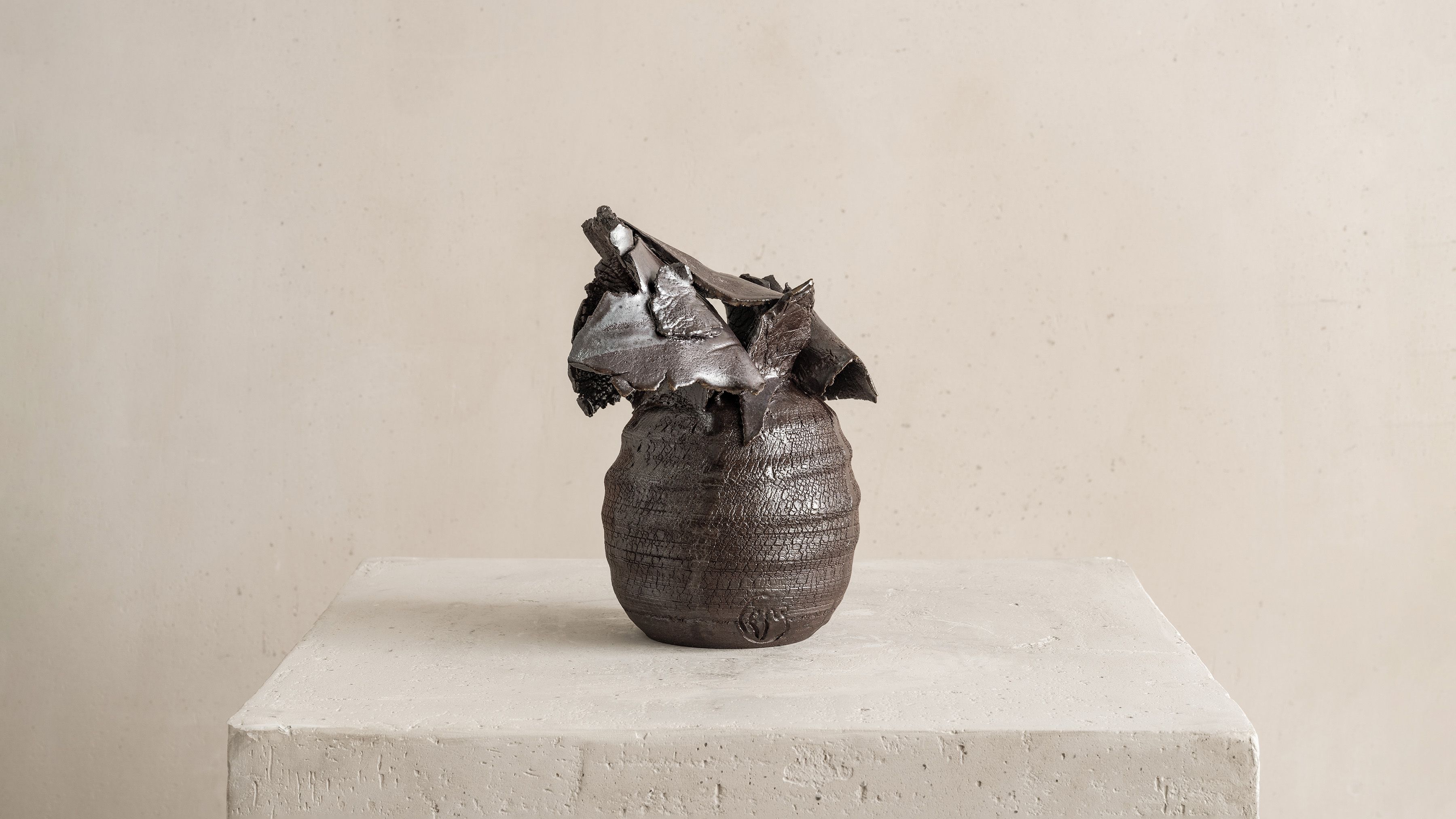 In any creative field or medium, Speliopoulos' work is rooted in the artist's passion for craftsmanship, organic material, and forms. For almost a decade, encouraged by the gallery, the artist has dedicated his creative exploration to the study of clay, stemming from a long-standing interest in the medium, its malleability, and tactile expressions. Since his inaugural exhibition Archaeos at Ateliers Courbet in September 2019, Speliopoulos has continued to evolve his ceramic practice, presenting solo exhibitions Chthonic in 2021 and Miteria in 2023. The artist is currently completing his fourth series, set to be unveiled in the winter of 2024.