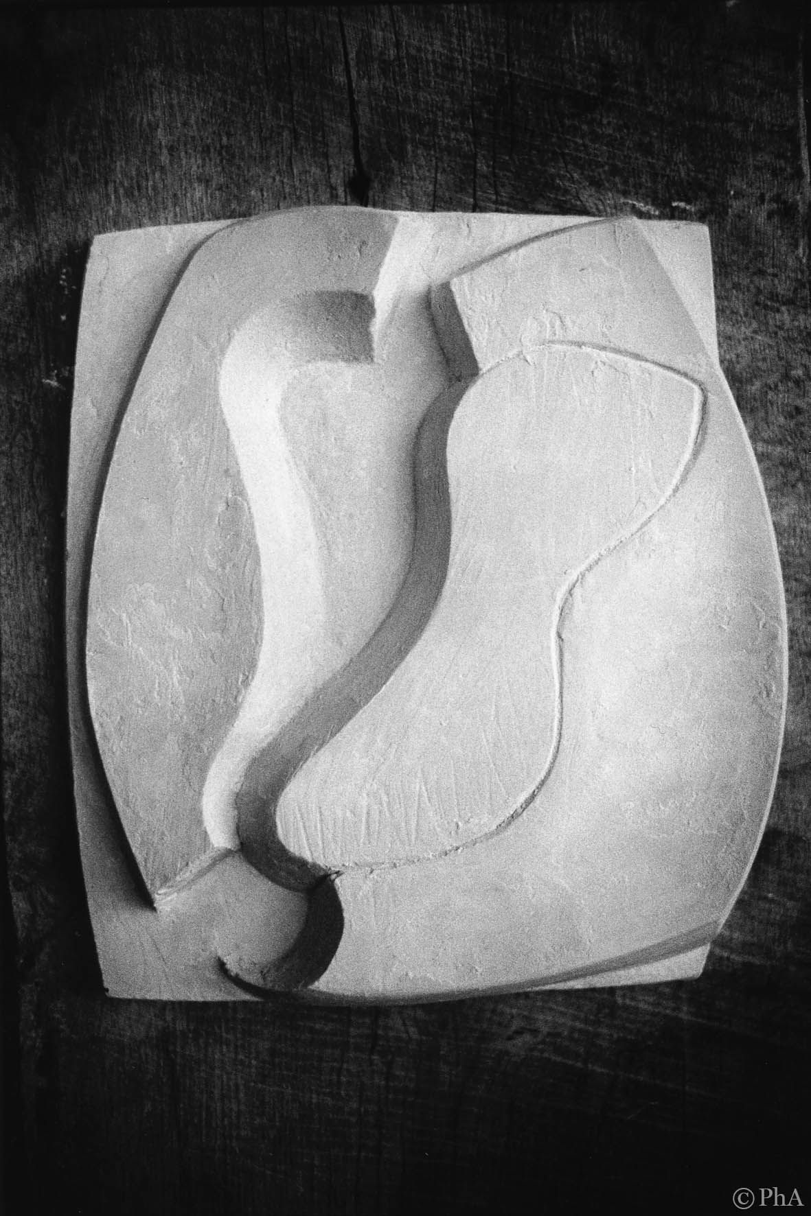 With a longstanding interest for monumental sculptures and their relation to the fabric of public spaces, Philippe’s small wood or plaster pieces might conceal the artist’s vision for an enlarged iteration aimed to engage with the public in outdoor spaces. Yet to the eye of the appreciator, each of these models, whether sculpted in wood or plaster, represents an elegant work of art with both its intimate scale and its monumental idea.
