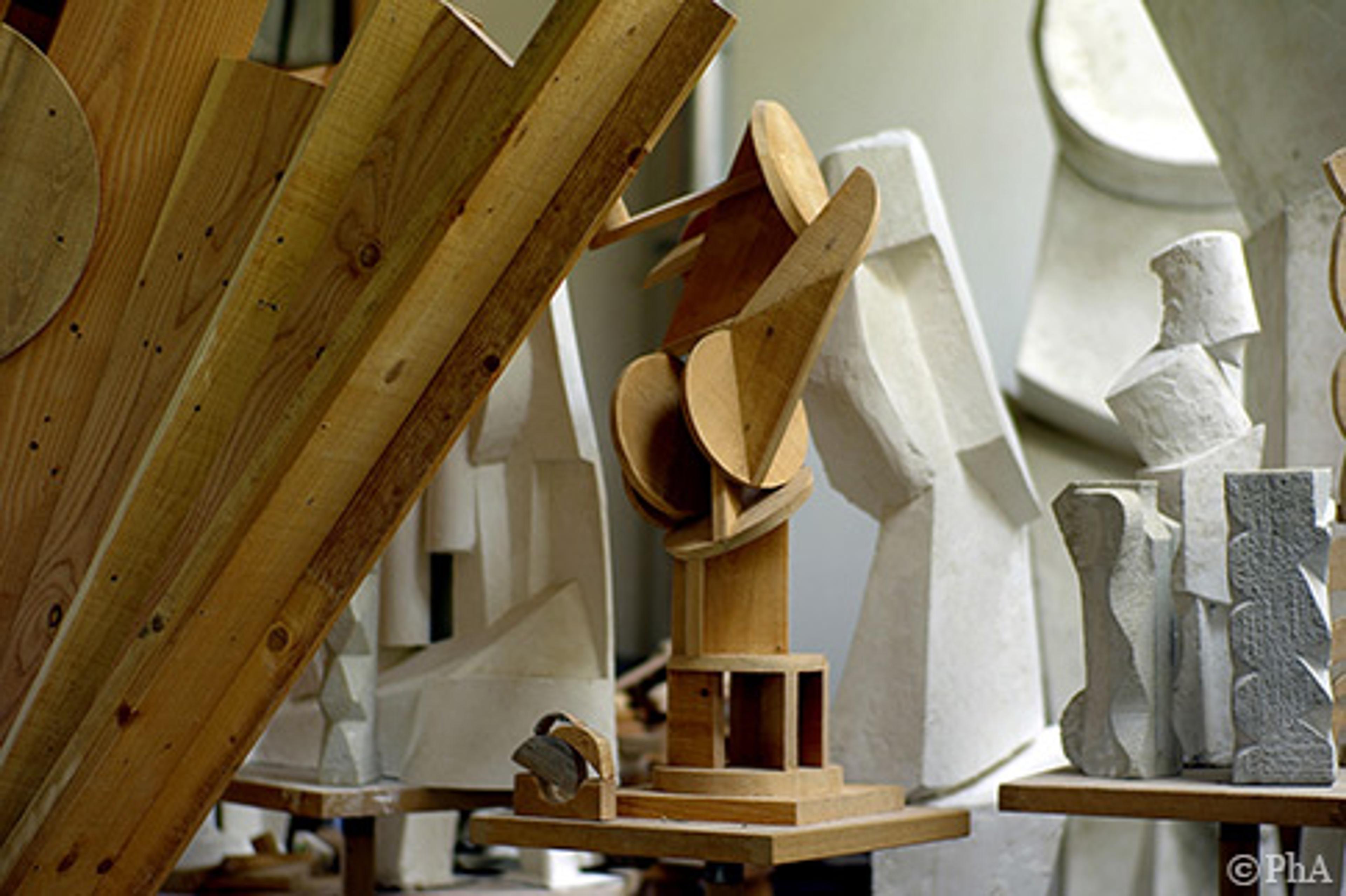 With a longstanding interest for monumental sculptures and their relation to the fabric of public spaces, Philippe’s small wood or plaster pieces might conceal the artist’s vision for an enlarged iteration aimed to engage with the public in outdoor spaces. Yet to the eye of the appreciator, each of these models, whether sculpted in wood or plaster, represents an elegant work of art with both its intimate scale and its monumental idea.