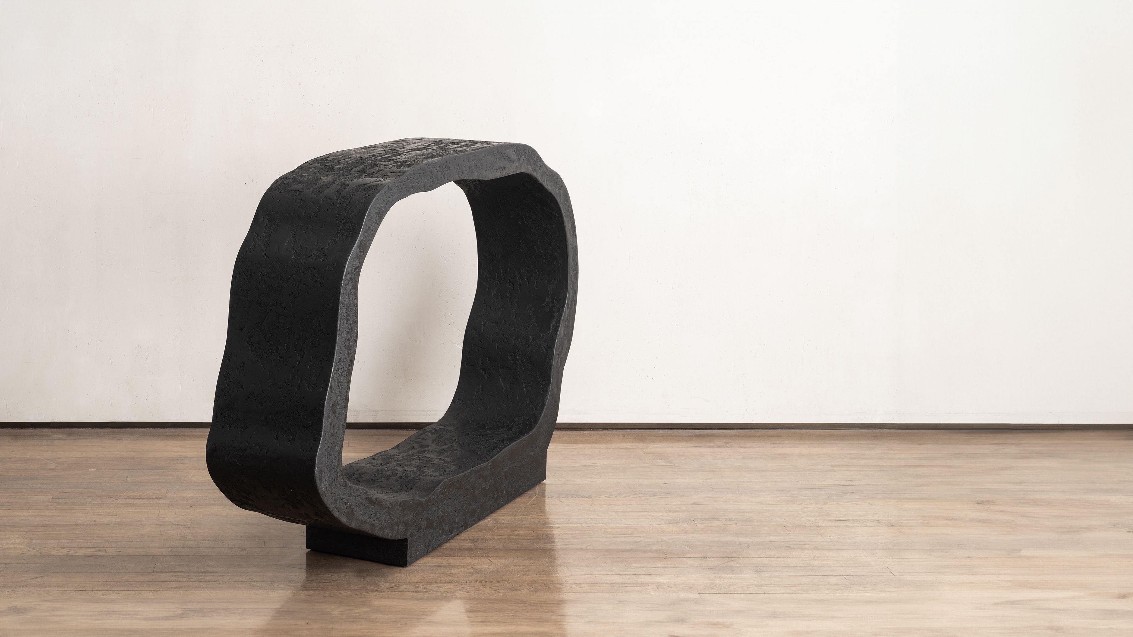 Rhizome is a sculptural work inspired by nature, an exploration at the intersection of form and function. In a monochromatic approach, Pierre Bonnefille works the surface in successive layers, using ground charcoal powder that infuses the material into the mass.