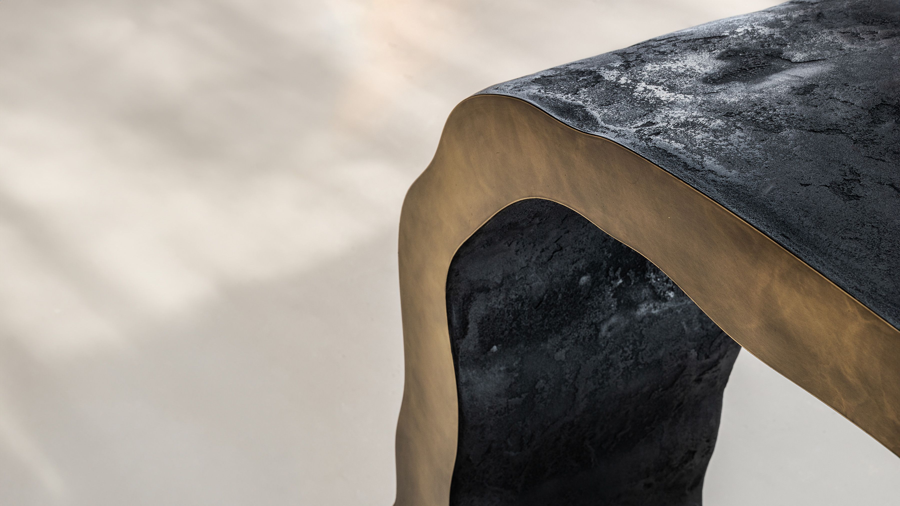Rhizome is a sculptural work inspired by nature, an exploration at the intersection of form and function. In a monochromatic approach, Pierre Bonnefille works the surface in successive layers, using ground charcoal powder that infuses the material into the mass.
