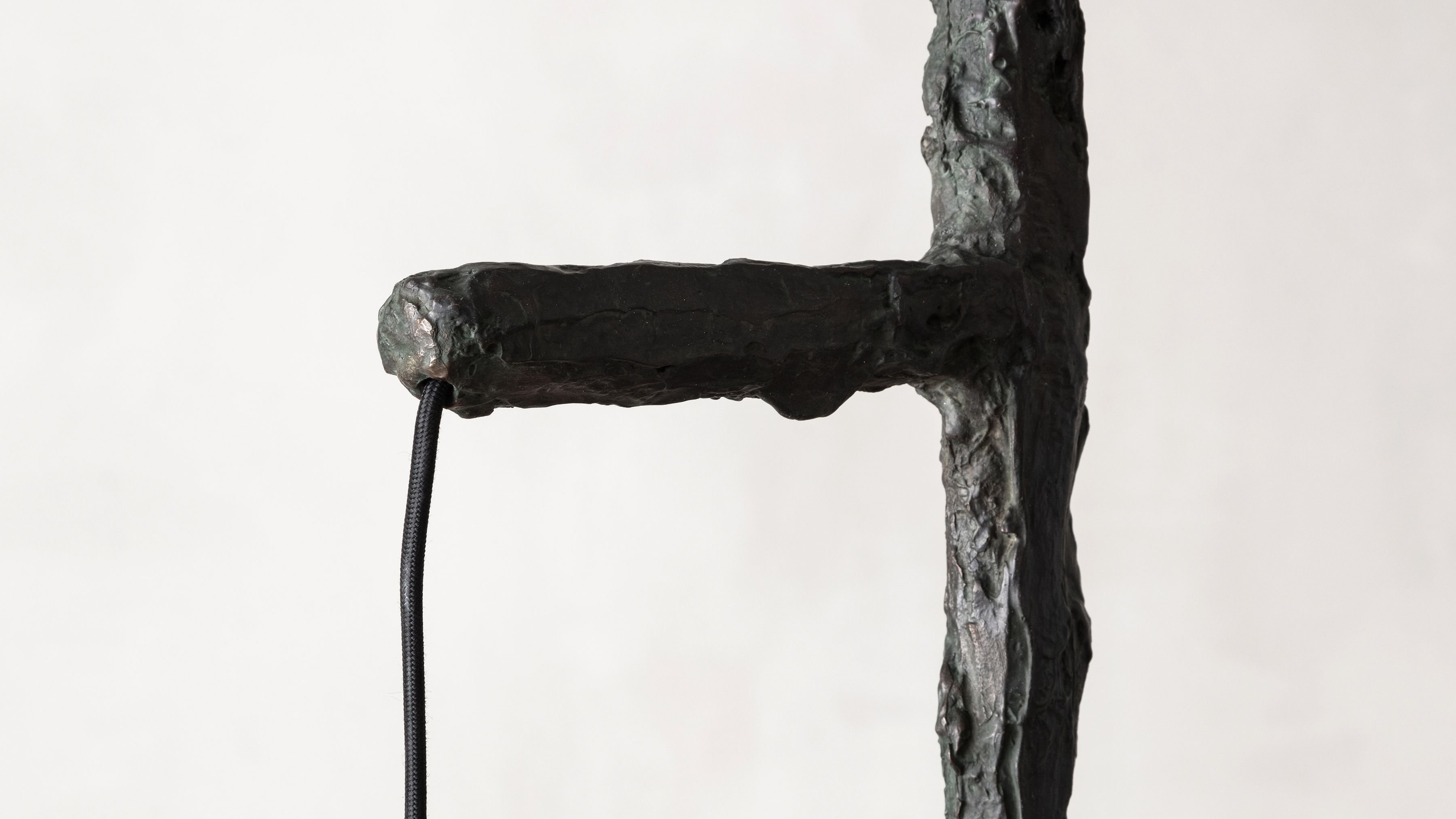 The artist's homage to Giacometti, this limited edition sculptural lamp finds its elegance in its simplicity. Cast in bronze, the lighting piece is numbered and signed by the artist. Cast to order in Paris.
