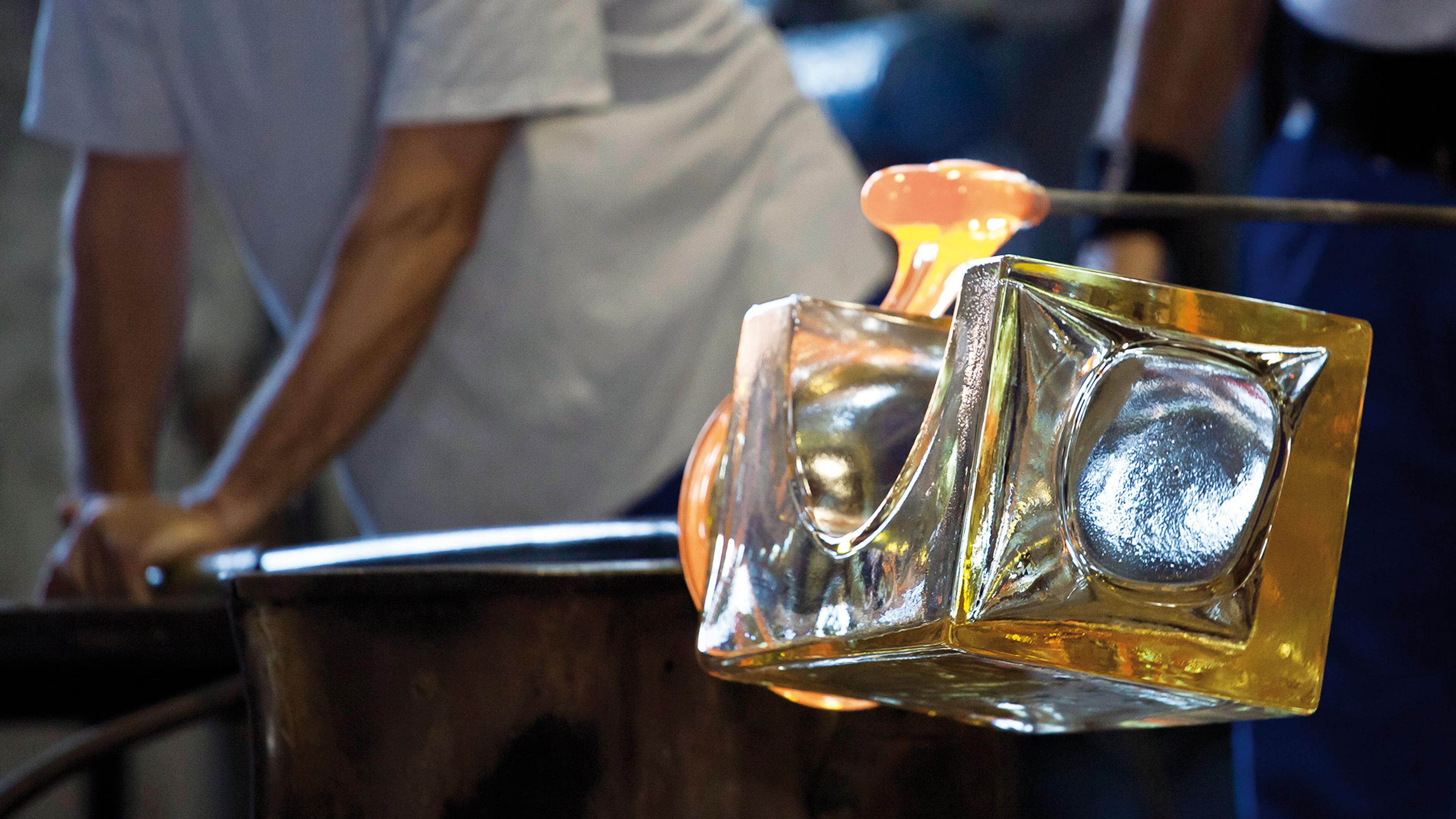 The theme of the Cosmos vase series embodies the “Order of Space” by employing a simple geometry of a sphere subtracted from the center of a cube. Perpendicular divisions of the combined volume result in four separate parts. Aspherical shape emerges through the ‘nothingness’—the Buddhist concept that abounds in the contemporary architect’s structural designs—and the Cosmos appears suspended in time and space. Through the skilled craftsmanship of Venetian glassmakers, the three elements present a jewel-like sculpture. The viewer must imagine the intentionally missing piece of the composition to complete the order of the “COSMOS”.