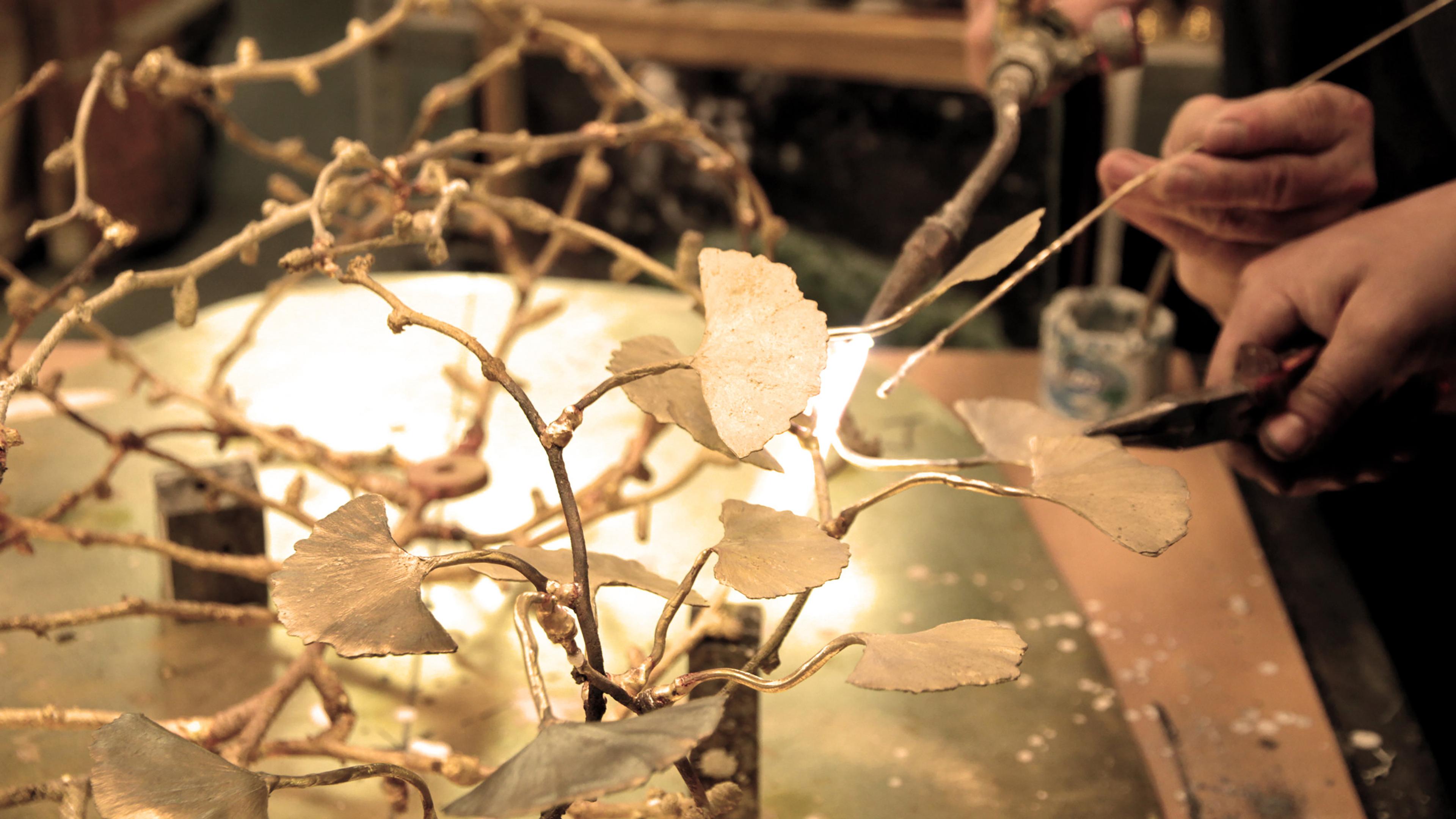 This series is designed from the Ginkgo Biloba tree, one of the oldest tree species in the world. In Japanese culture, the Ginkgo tree symbolizes eternity and hope and was the only tree that survived the Hiroshima bombing. In Chinese culture, the Ginkgo is a sacred tree that symbolizes duality: the masculine and feminine, the sky and earth, the seen and the unseen, the sun and the moon, the yin and yang. Mar’s lights are made of cast brass, one by one, by expert artisans in Madrid, the same artisans-sculptors that produce some of the sculptures for Marc Quinn and Anish Kapoor.