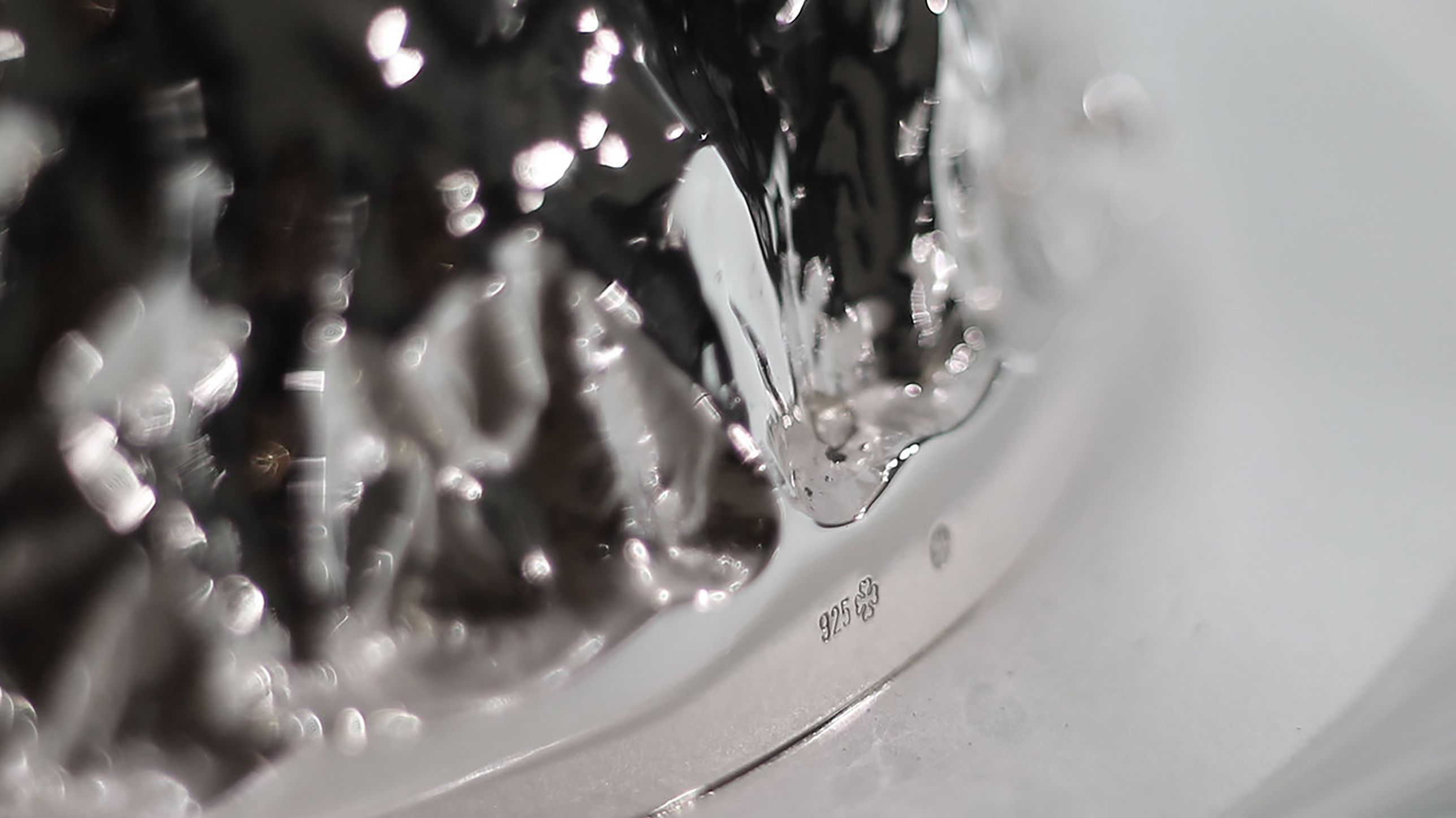 The Iceberg Cooler by artist Alexandre Achasseriau in partnership with Wiener Silber Manufacturer is a hammered and chiseled silver cooler that brings the form of the Austrian Alps to life in a visceral and functional form. In 1882, Alexander Sturm, a trained gold- and silversmith, founded what is today Wiener Silber Manufactur in Vienna. By the turn of the century, the silversmiths created objects for the intellectual elite that favored the simple lines of the Wiener Werkstätte. After the Second World War, the manufacturer became involved with avant-garde design and collaborated with luminary designers and architects until the manufacturer closed its doors in 1982. It was the vision of an innovative tradition of service that inspired Georg Stradiot to found the Vienna Silver Manufacture in 2008. Today the company revives masterpieces from their collection of 11,000 drawings dating to 1882, as well as paves new roads in the production of silver with artists such as Erwin Wurm and Zaha Hadid. Wiener Silber Manufactur uses a special alloy that contains 94% by mass of silver (Sterling silver, by comparison, only contains 92.5% of silver). The high value of raw materials ensures that the product value will increase over the years. In addition, the silverware is exceptionally easy to clean, since it is dishwasher-proof and extremely resistant to tarnishing.