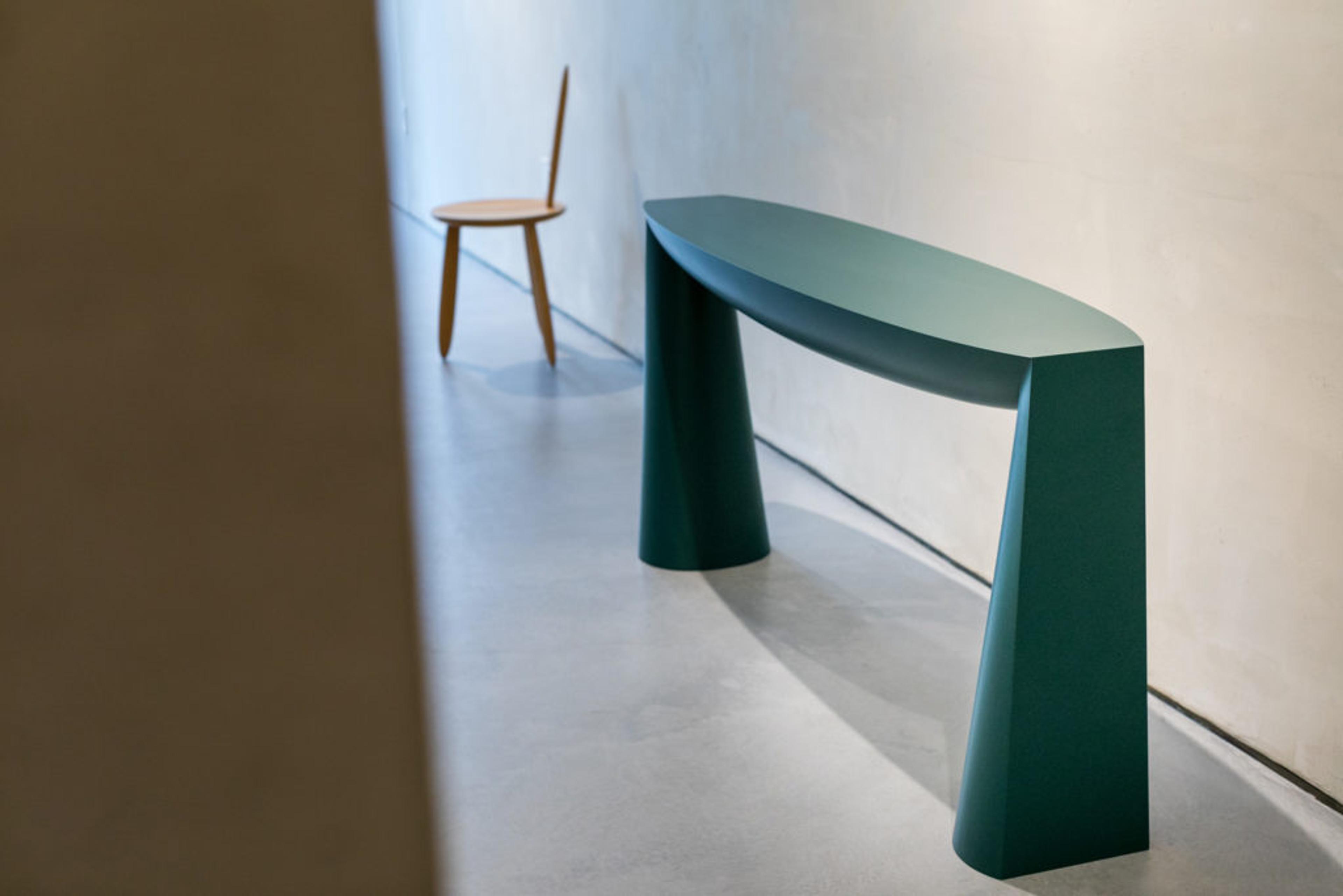 Each piece reflects the designer's appreciation for sensuous forms inspired by our natural and cultural environments. The artist allows his original design vision to morph through the hands of the fabricator guided by the nature of the chosen material. Bakker's design language is composed of movements whether static, as implied by the trail of the craftsmen's hands, or continual through the gestures of their use.