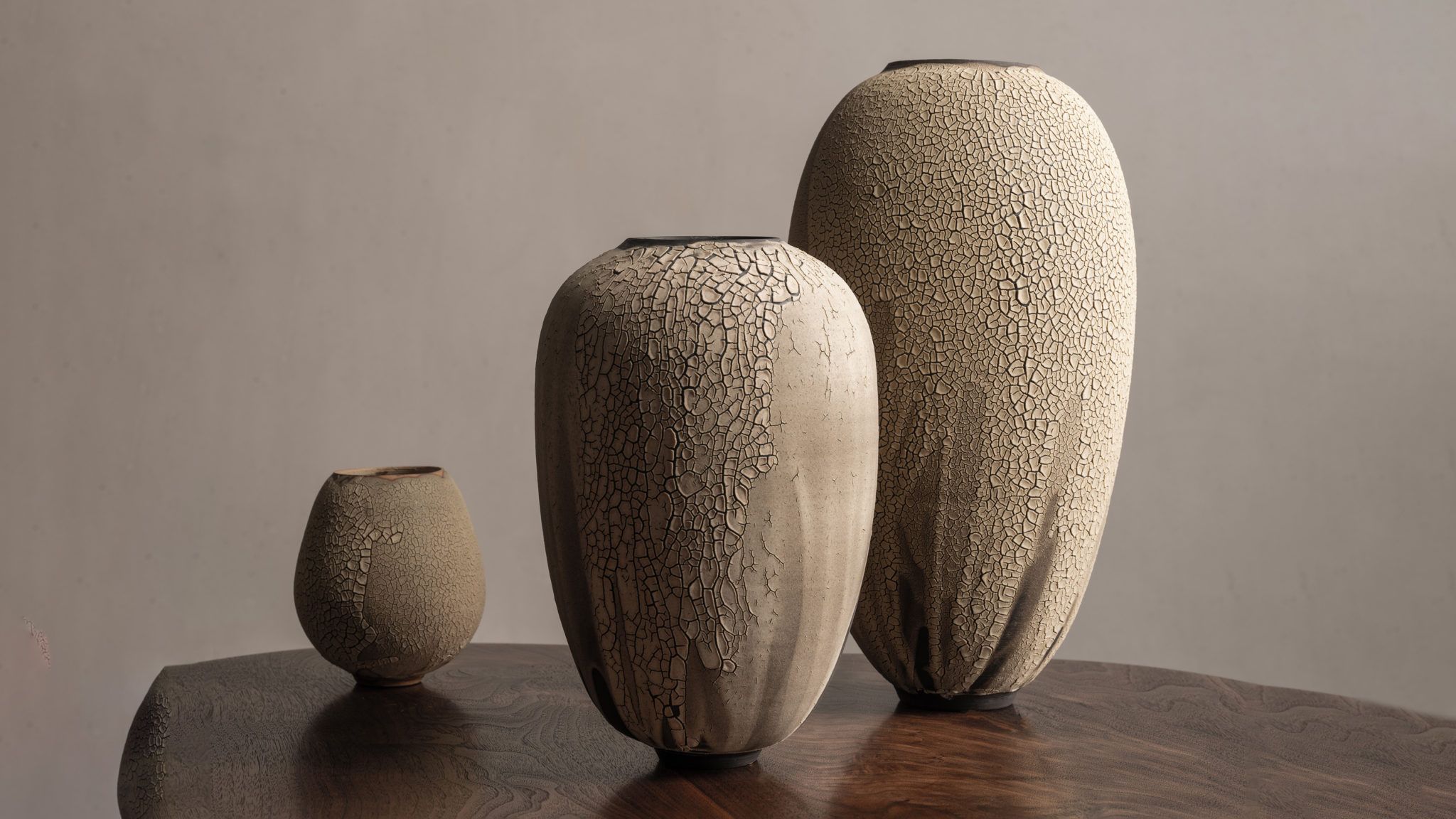 French ceramicist Karen Swami’s work has garnered the steady appreciation of international critics and collectors for its elegant simplicity and textured skins. Her nom d’artiste “Swami” is a phonetic adaptation of her maiden name, Souhami, and refers to a spiritual or religious teacher in Sanskrit. As for the inspirations behind her body of work, they range from ancient Egyptian Nagada vases to Japanese ceramic traditions to the work of her contemporary peers including Alev Ebüzziya Siesbye and Magdalene Odundo among others.
