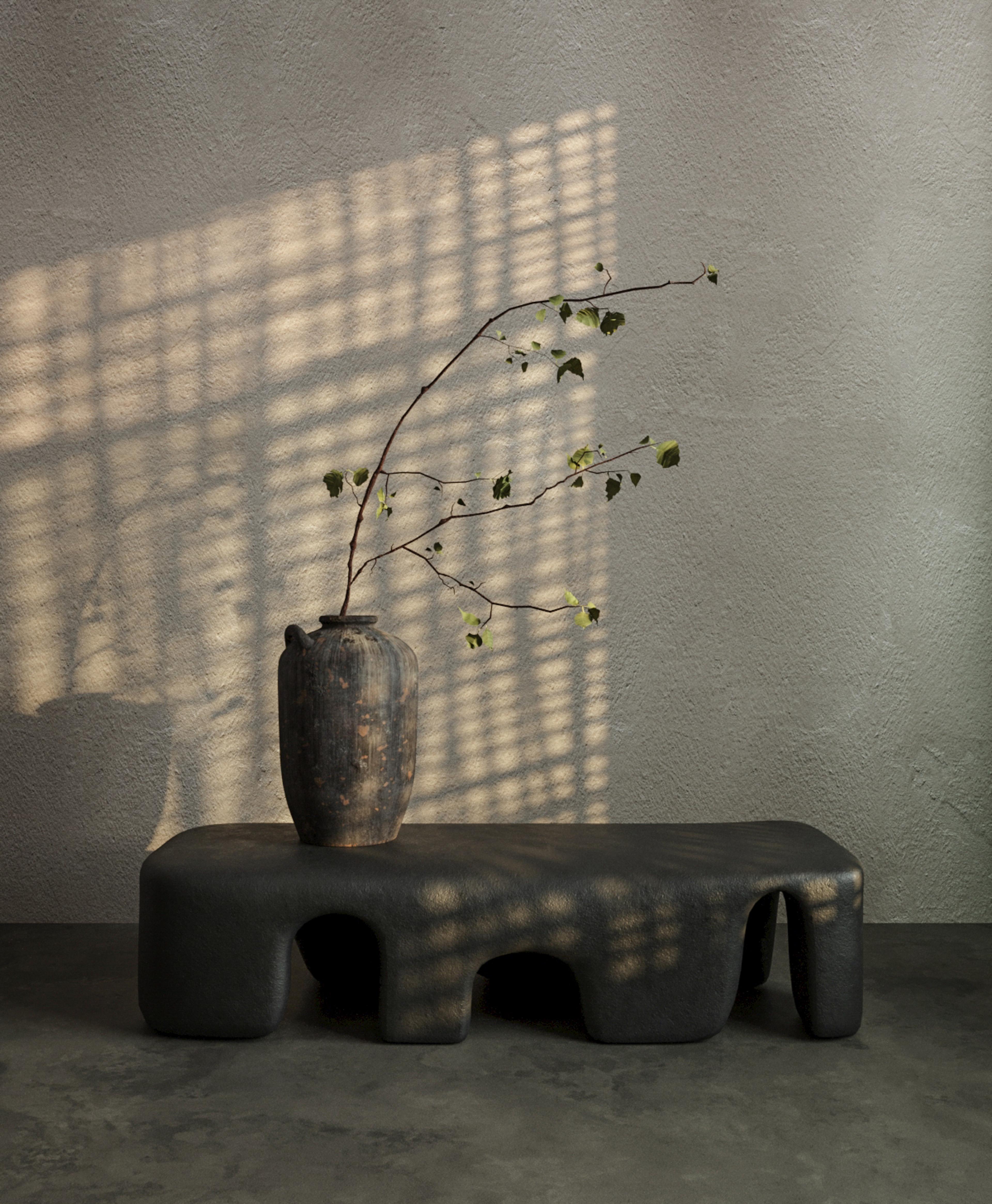 Serhii Makhno, has honed an iconic design vocabulary for over twenty years, spanning architecture, interior design, sculpture, and objets d’art. Since its inception in 2003 in Kyiv, Makhno’s studio has become a reflection of the artist’s multi-disciplinary vision — housing a ceramic workshop, functional art, and lighting design studio alongside Makhno’s team of architects and designers. Stemming from ongoing conversations with gallery founder Melanie Courbet, Serhii Makhno and Courbet developed a new series of unique sculptural and functional pieces, hand modeled in ceramic and plaster, expanding upon the ceramic sculptor’s extensive portfolio of ceramic objects and sculpture, and marking his first exploration of furniture design ideas with ceramic.
